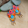 Kolorowe i letnie kolczyki : fiolet biskupi, pomarańcz, kardamon i jasny niebieski. Kolczyki uszyłam z różnych sznurków sutasz, szklanych kryształków oraz koralików. Istotą tego modelu są frędzle z koralików na bazie koła.