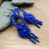 Proste, lekkie i efektowne kolczyki z koralikami. Model Silvia to ażurowa biżuteria na bazie o kształcie wrzeciona. Kolczyki uszyłam z metalizowanego sznurka sutasz oraz dużej ilości koralików w kolorze chabrowym.